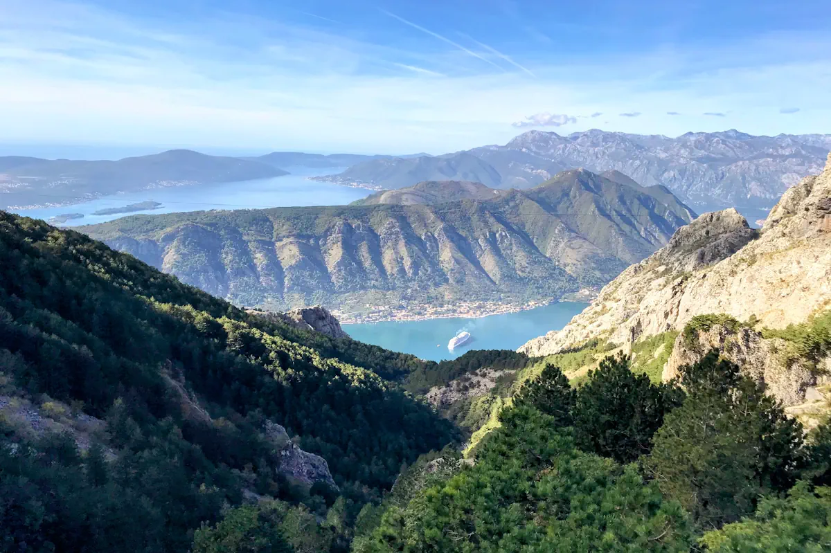 Ladder of Kotor Viewpoint over the Bay with cruise ship docked